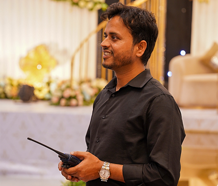 Sit back and enjoy your event while our professional event managers handle everything. Our expert event managers use interactive digital planning tools to design layouts, manage schedules, and coordinate logistics in real-time. From AI-powered scheduling to automated guest management, every detail is handled efficiently. With instant communication systems and 3D venue mapping, we ensure a flawless execution tailored to your vision.