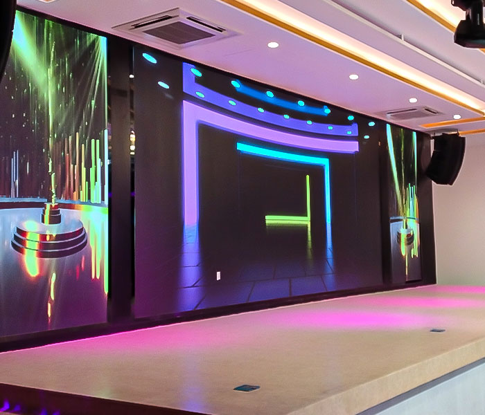 Engage your audience with our high-definition one large LED screen with two adjacent LED Screens-big, bright, and crystal clear. Perfect for high-resolution presentations, video displays, live streams, and mesmerizing visuals, they ensure every guest gets a front-row experience.