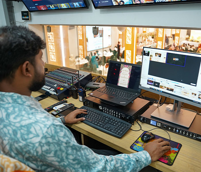 Behind every seamless event is our state-of-the-art control room equipped with server systems, sound mixers, LED panel modulators, and more. Our tech-driven setup ensures flawless coordination and real-time monitoring, so every moment runs smoothly.